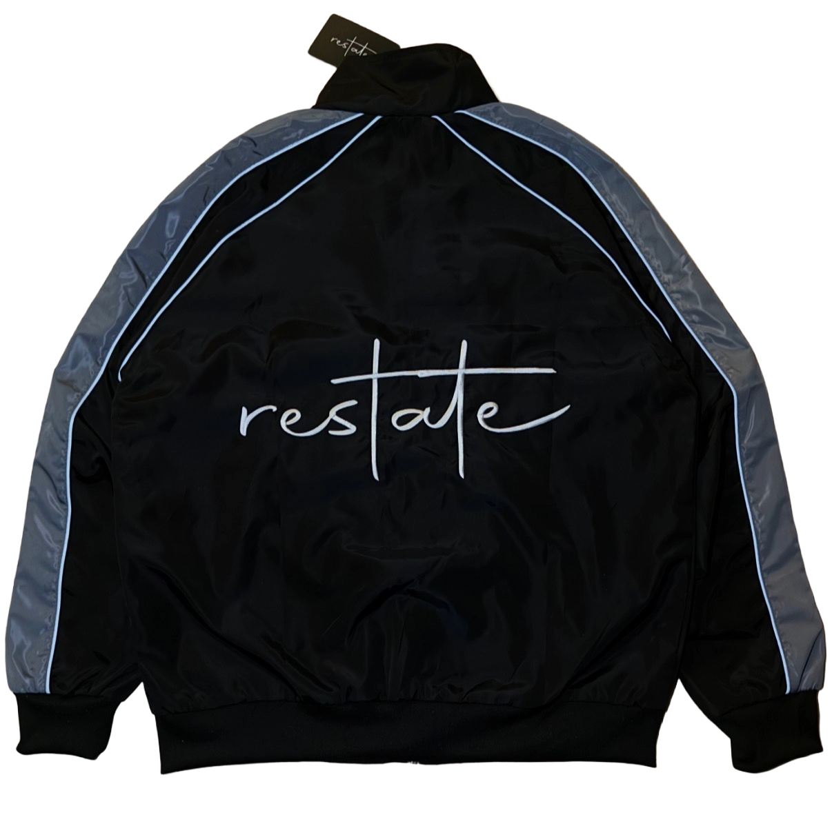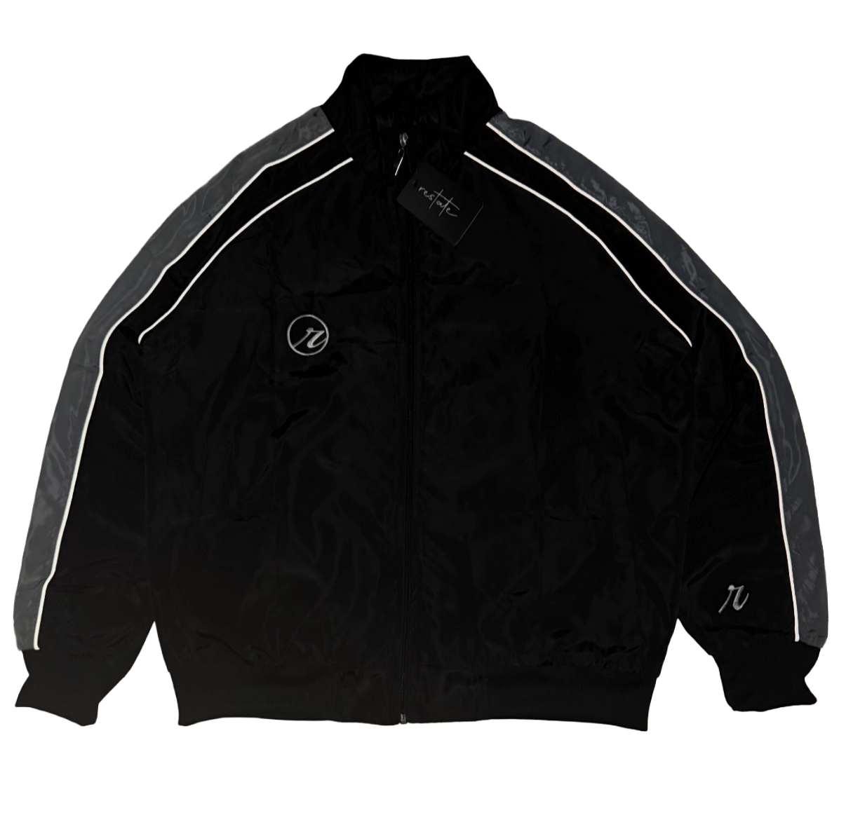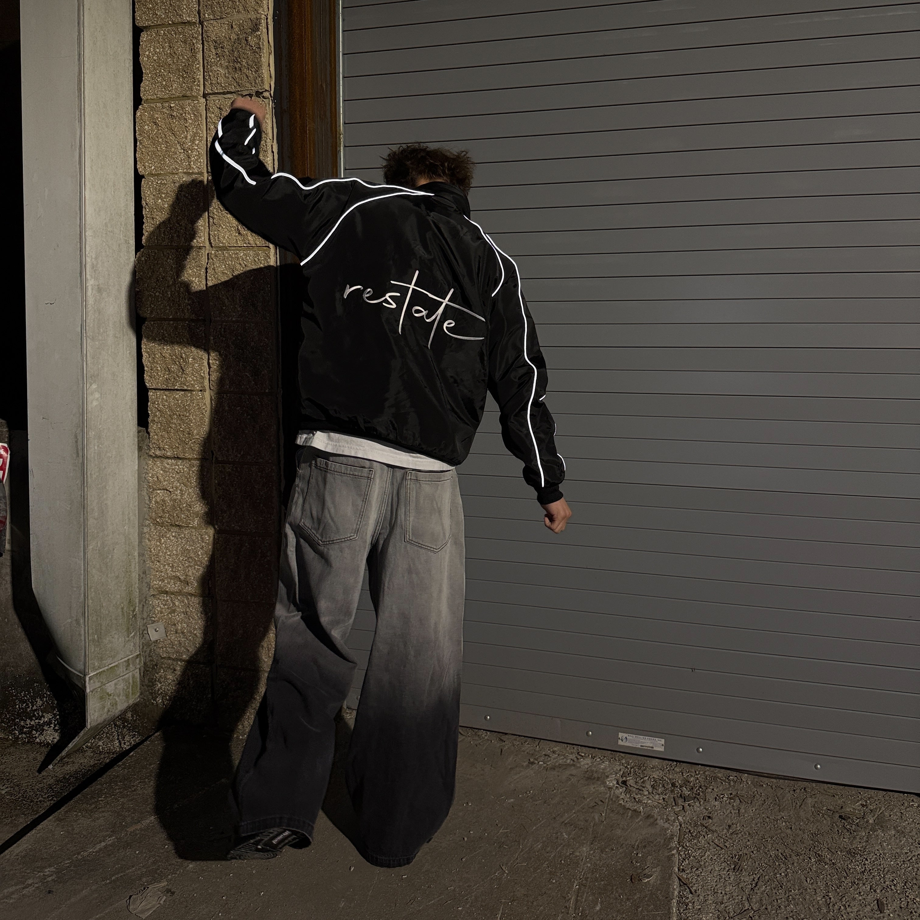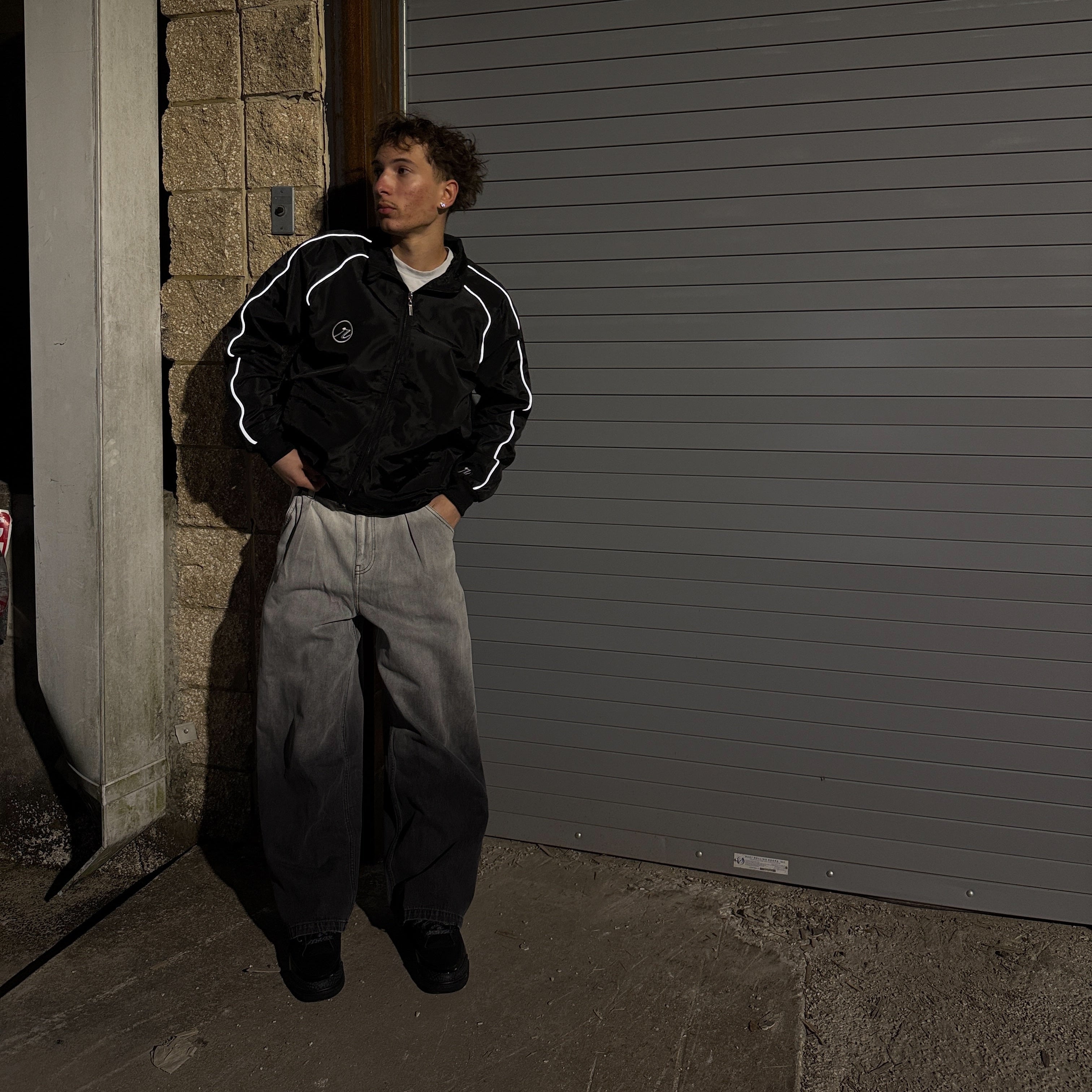 Lightweight and reflective, defined by subtle contrast and control. Constructed from durable polyester with a smooth satin lining for comfort and a clean interior finish. Reflective striping traces movement under light, while an inner chest pocket inspired by traditional suit tailoring refines the structure within. Elastic cuffs and waistband hold form without restriction. A study in restraint: functional, minimal, intentional.